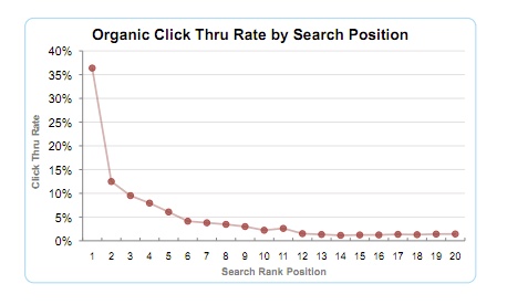 Bild: Hier sehen Sie den prozentualen Klick-Anteil je nach Position im bei den organischen Suchergebnissen von Google.